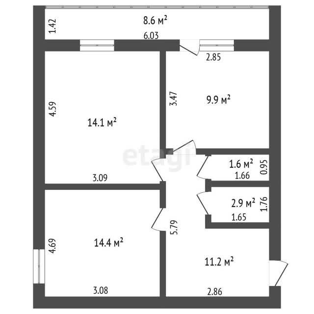 - Общая площадь54.3 м²