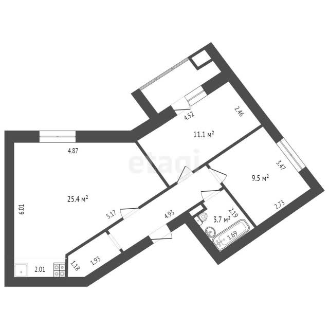 - Общая площадь59.5 м²